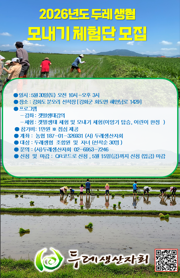 [모집] 2026년 두레생협 모내기 체험단 모집