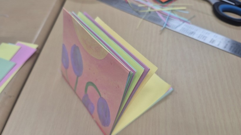 2차 노트 만들기의 목표는 더 다양한 겉표지 재료를 이용해 보는 거예요.