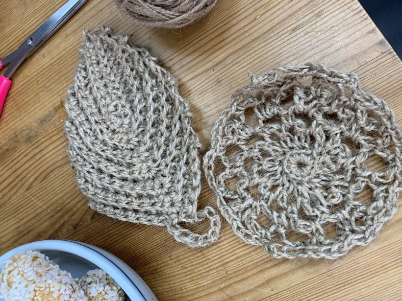완성된 수세미를 보며 모두가 뿌듯한 미소를 지었답니다.