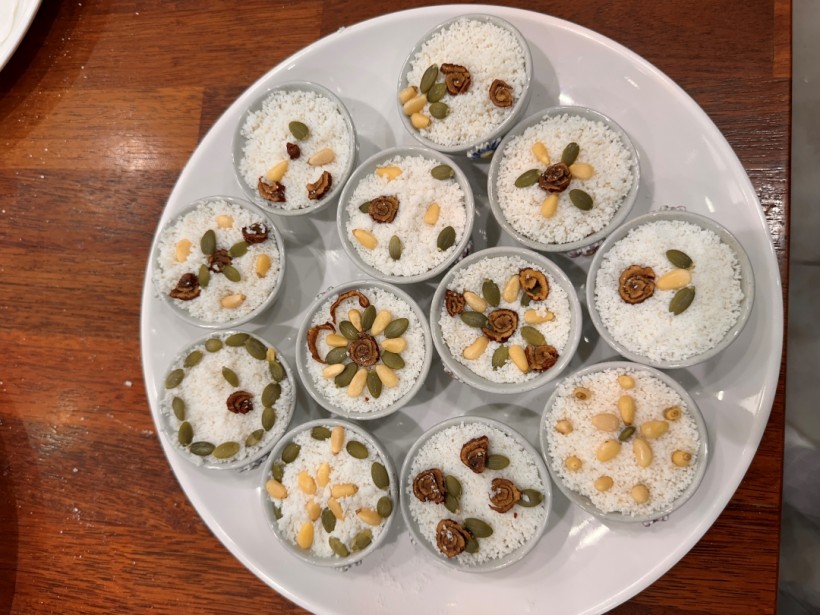 강사님께서 고명으로 대추와 호박씨, 잣을 주고 꾸며보라고 했어요.