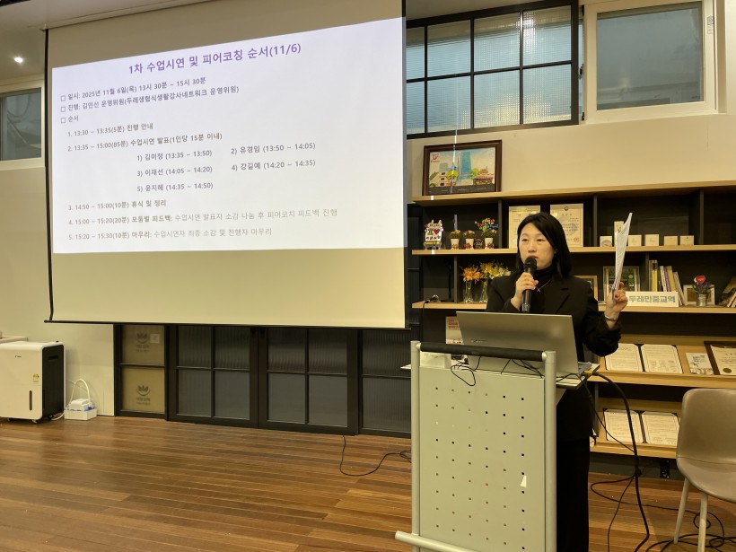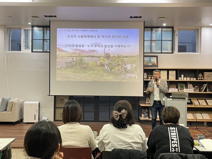 2025년 10월 23일부터 11월 11일까지, 총 15명이 수료한 ‘2025 두레생협 생태전환 식생활강사 전문과정’(12회, 24시간)의 여정을 마쳤습니다. 단순한 지식 습득을 넘어, 생태적 전환 시대에 ‘두레생협 식생활강사’로서 나아갈 방향과 철학을 성찰하는 소중한 시간이었습니다.