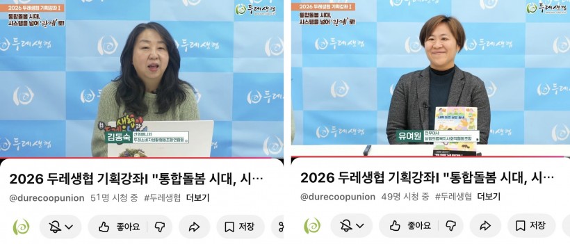 지난 3월 17일, 봄기운과 함께 두레생협의 2026년 첫 번째 기획강좌가 열렸습니다. 이번 강좌는 “통합돌봄 시대, 시스템을 넘어 ‘관계’로!”라는 주제로 진행되었습니다. 특히, ‘의료ㆍ요양 등 지역 돌봄의 통합지원에 관한 법률’(약칭: 돌봄통합지원법)이 본격적으로 시행되는 시점에 맞춰, 우리가 마주할 돌봄의 미래를 함께 고민해 보는 시간이었습니다.