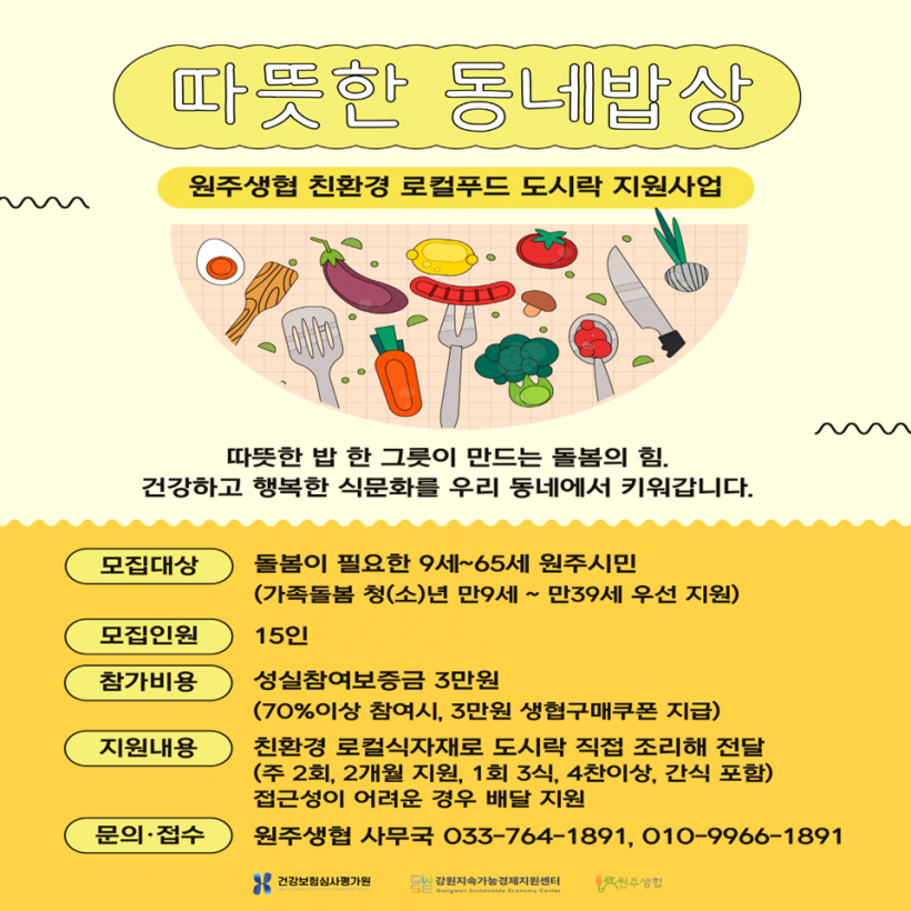 원주생협을 비롯한 여러 사회적경제기업이 함께 참여해요.