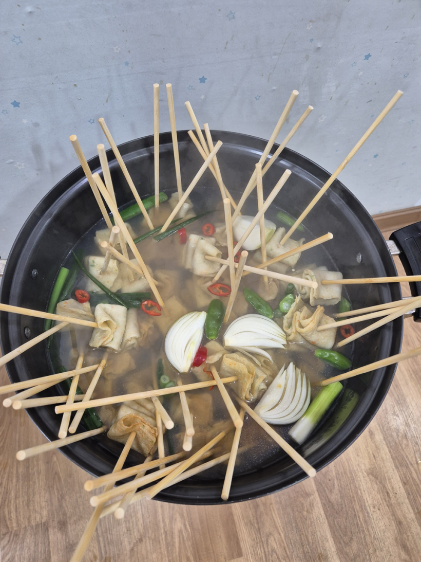 간단한 몸풀기와 자연산 홍합과 알육수로 끓인 따뜻한 어묵탕으로