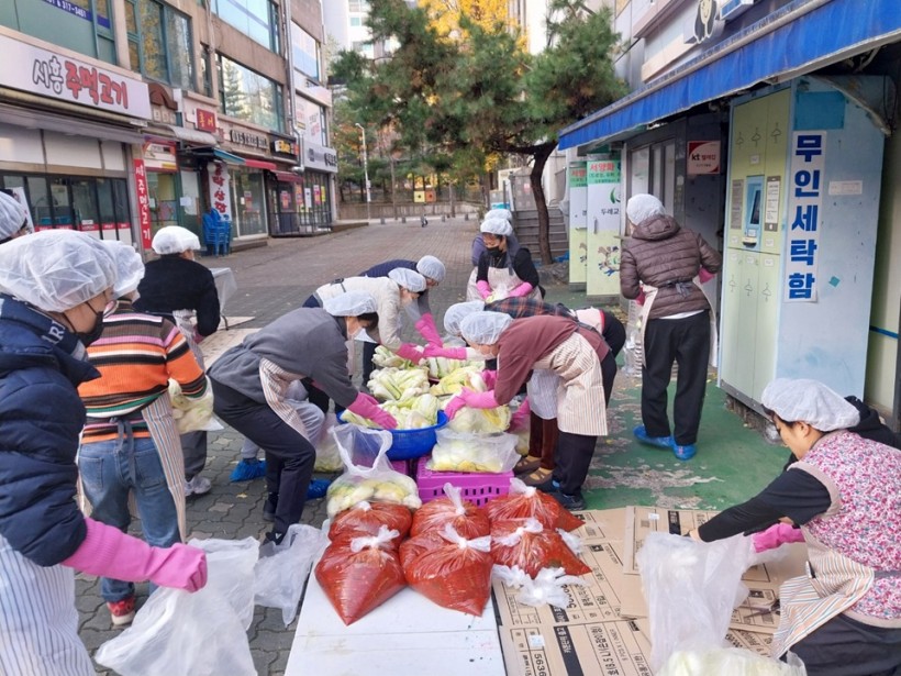은행점 앞마당에 모여 김장을 진행했는데요.