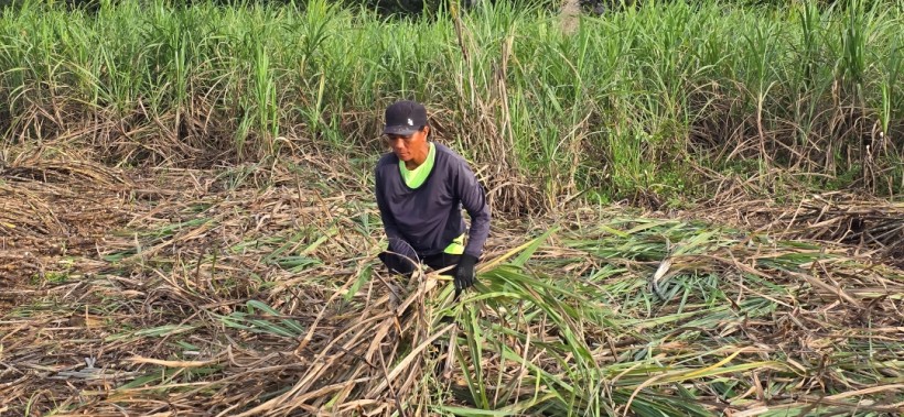 (“다마 공동체의 사탕수수 작업 시연 모습이에요. 파종부터 수확까지 모든 과정을 손으로 한다고 해요.”)