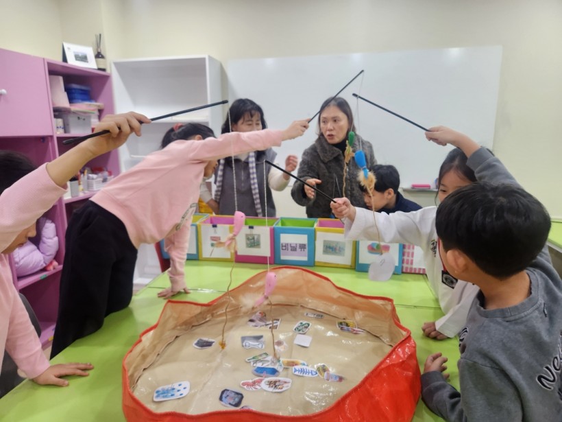 영상 교육을 마친 뒤에는 ‘비석치기’와 ‘낚시놀이’를 통해 배운 내용을 복습했어요.