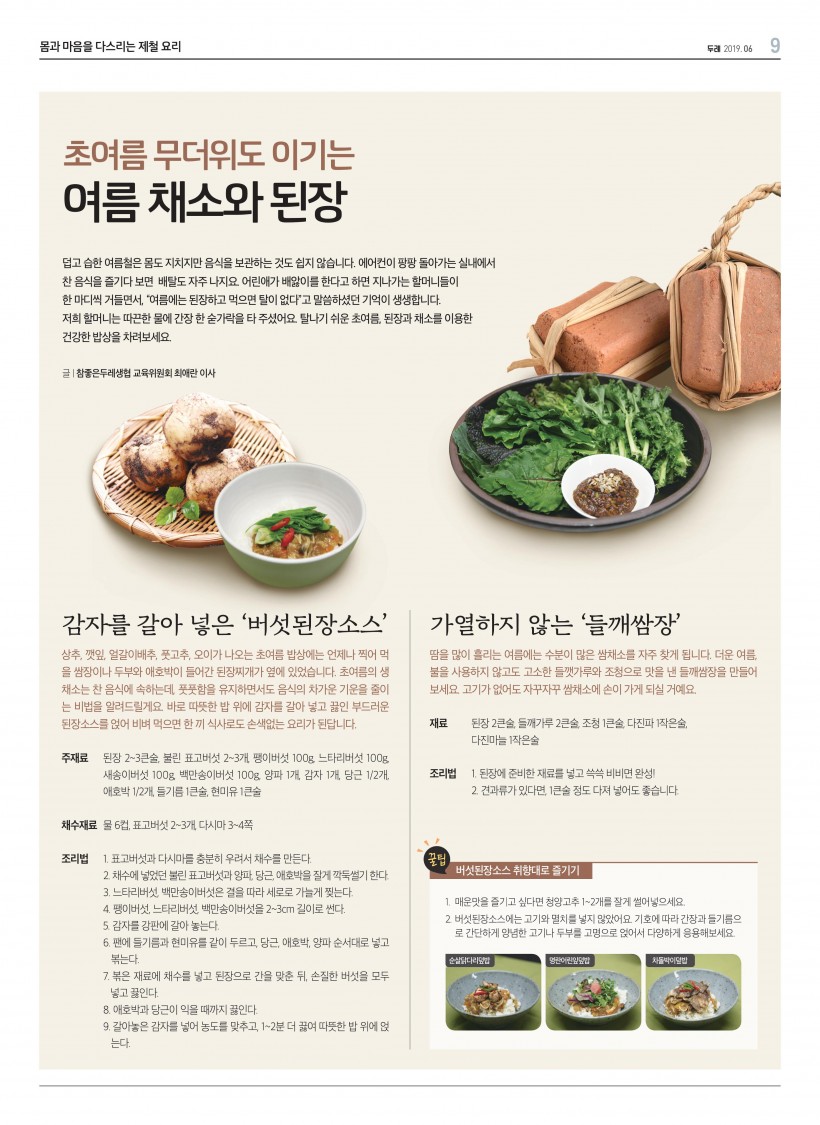 [제철요리] 초여름 무더위도 이기는 여름 채소와 된장 > 두레 COOK